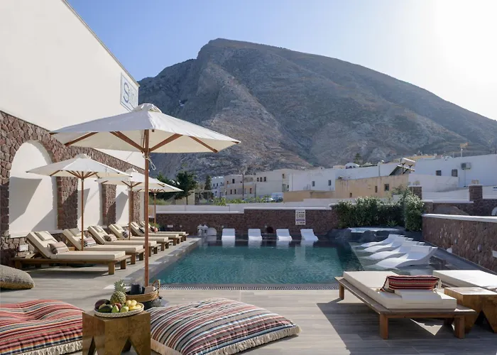 Kamáriのホテルは、サントリーニ空港から約5で、フィラ先史期博物館などの文化施設から7キロメートルです。 Selini Ηotelすぐ近くのブラック・ビーチを訪れることができます。 宿泊施設は古代ティラから自動車で10分以内の場所にあります。 この3つ星ホテルとても近くのところにBoat to Perissa beachバス停があります。